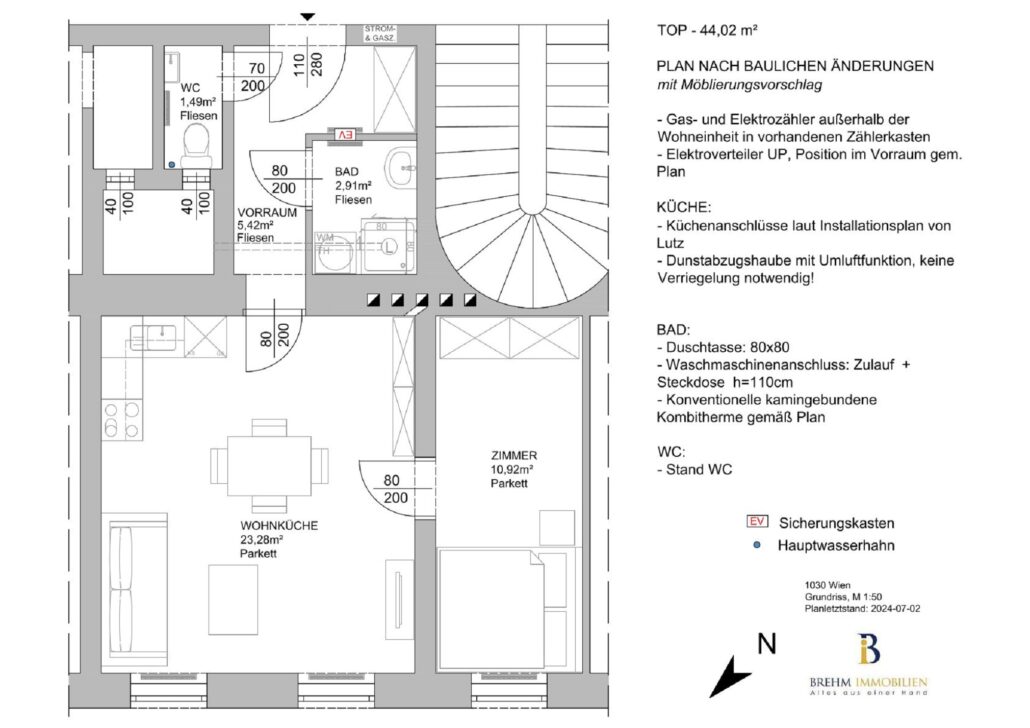 • Bauanzeige bei Innenumbau: Bei Umbauten im Wohnungsinneren, die eine Grundrissänderung mit sich bringen, oder bei Wohnungszusammenlegungen ist eine Bauanzeige erforderlich, die bei der Baupolizei MA37 eingereicht werden muss.
